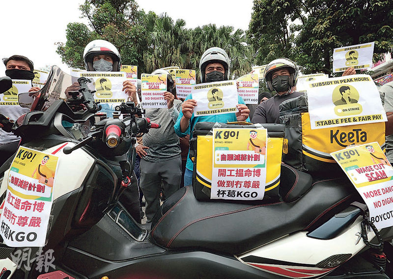 【明報專訊】「開工搵命博,做到冇尊嚴。」約50名Keeta外賣員昨午在荃灣發起罷工,並高呼口號,抗議Keeta自月初大幅降低每張訂單的報酬。有車手稱,本月起Keeta更取消部分區域繁忙時段的獎賞,致收入大減,已「轉會」至foodpanda。Keeta昨回覆本報稱,配送服務費及獎勵會因應上線時段、配送距離、難度及市場需求等因素而有差異,逾九成活躍送遞員亦曾獲額外獎賞。
