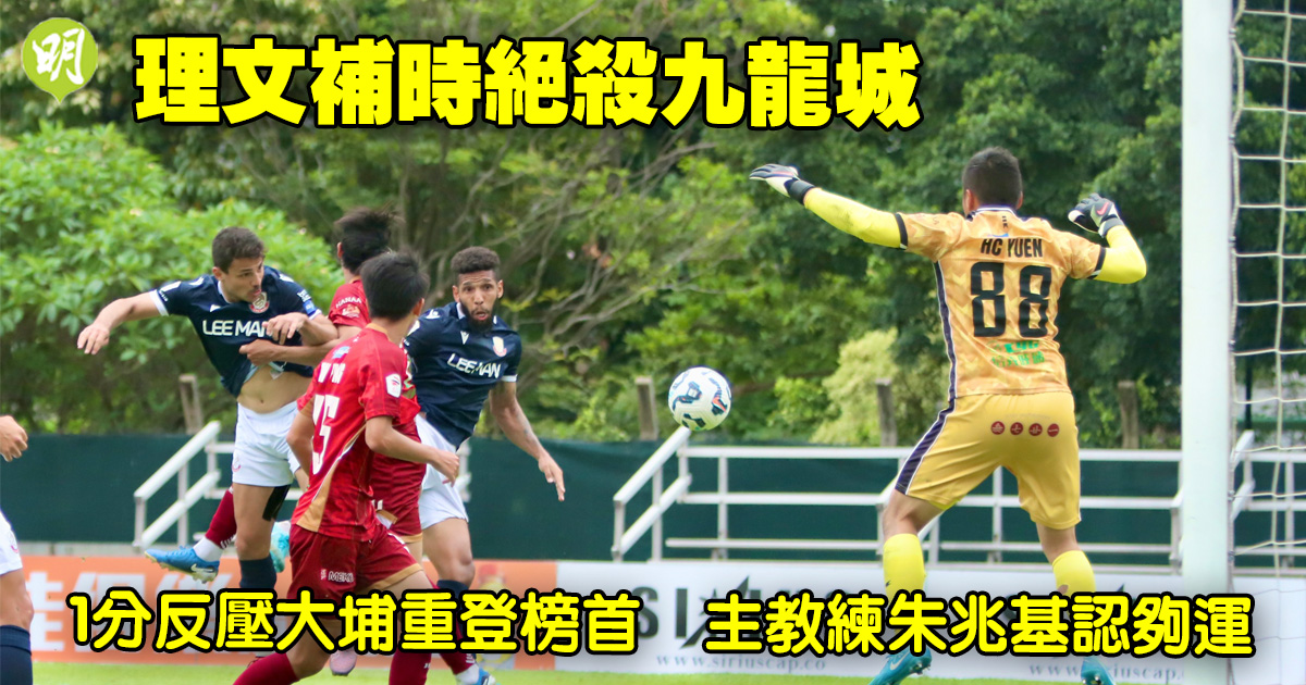 理文今午(11日)港超雖領先大半場下完場前補時9分鐘,被九龍城前鋒卡朗把握門將陳嘉豪開「生波」低級失誤射入空門一度扳平,但前鋒羅沙1分鐘後接應傳中頭槌絕殺,助球隊10人應戰下作客深水埗運動場戲劇性險勝2:1,以1分力壓昨日同樣絕殺對手的大埔,重返榜首兼續掌爭標主導權。理文暫代主教練朱兆基賽後承認勝仗純屬幸運,「緊接這星期的部署,我想播放這場最後兩分鐘的片段就可以了」。