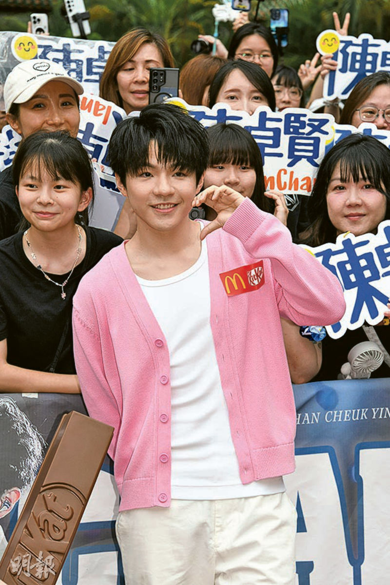 【明報專訊】MIRROR成員陳卓賢(Ian)下月5日凌晨出發到澳洲舉行巡迴演唱會,趁飛前密密接工作,昨日出席連鎖快餐店活動,獲大批粉絲到場支持。他表示最愛朱古力味甜品,會因應當日心情選擇甜度,食完會好開心。他獲送雪糕當蛋糕,預祝下月32歲生日,粉絲即場唱生日歌。