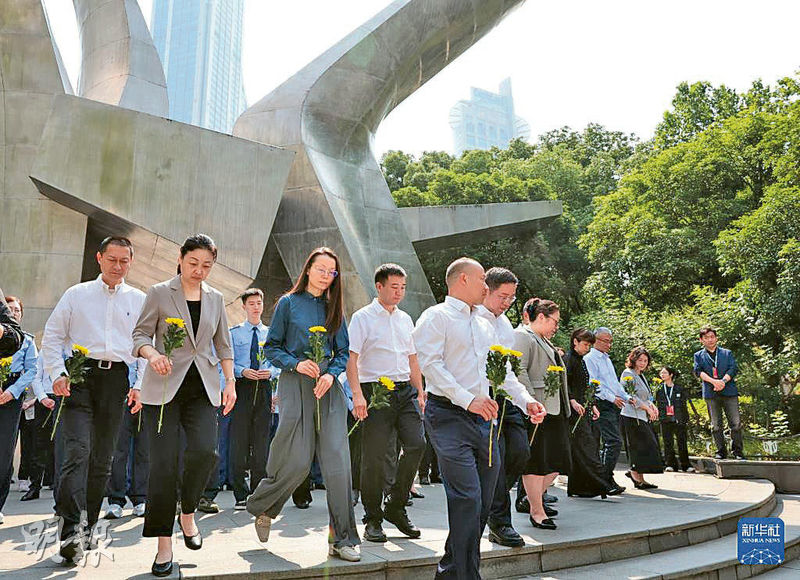 【明報專訊】昨日是五卅運動100周年,「上海市總工會紀念五卅運動100周年主題活動」在位於上海人民廣場的五卅運動紀念碑廣場舉行,職工代表等向紀念碑獻花。