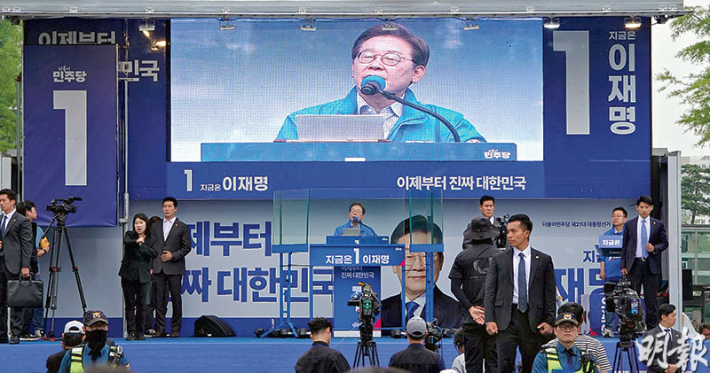綜合5月28日公布的選前最後民調,李在明支持度為43%至48%,金文洙支持度為34%至36%居次,另一保守派改革新黨的李俊錫則以10至12%排第三。儘管另一保守派候選人黃教安選前兩天宣布退選,但李俊錫堅持到底,意味着保守派無法整合票源,令李在明勝算大增。到昨天最後競選日,李在明和金文洙等仍盡力四出拉票,前者強調會先行克服民生危機,後者則攻擊李在明官司纏身。