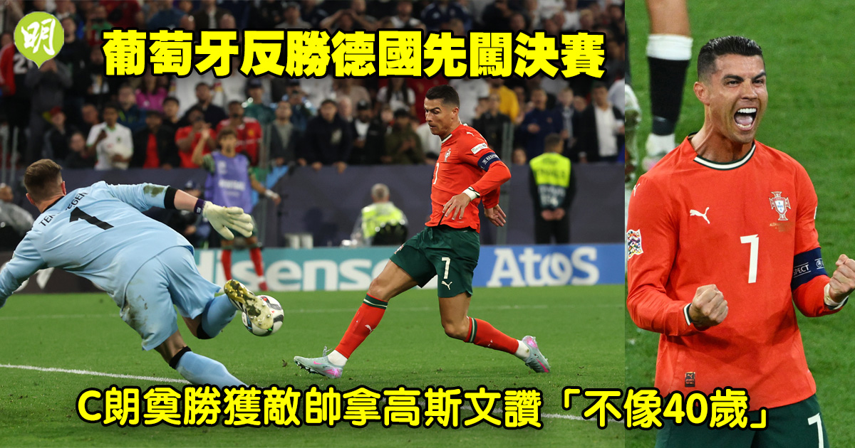 基斯坦奴朗拿度(C朗)今晨(5日)射入奠勝一球,協助葡萄牙作客以2:1反勝德國隊,率先第2次晉身歐洲國家聯賽決賽,將決戰明晨西班牙對法國隊的勝方。C朗賽後獲葡軍將帥大讚,連敵帥拿高斯文亦指對方能好好管理身體,令「一切都不像已40歲」。