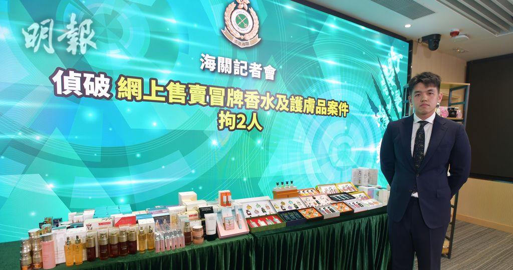 海關版權及商標調查科調查主任廖聞晉表示,檢獲的冒牌物品涉及多個品牌,當中香水及護膚品抄襲正貨的外觀設計及註冊商標,仿真度高。涉案兩名賣家均以住宅單位作為儲存倉,以減低營運成本,其中一名賣家為逃避追查,每次只入少量貨。他們以「平行進口」、免稅貨及專櫃貨作招徠,減低消費者戒心,並以低價吸引顧客,香水及護膚品的售價約300元,屬正貨30%。其中一名賣家更自設網站,顧客可自助下單,營造具規模的商家形象,搏取客人信任。
