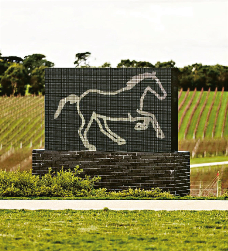 不過要說園內我最喜歡的作品,那就非Julian Opie的裝置藝術莫屬,我一向都有留意Julian的作品,幾年前在維多利亞州國立美術館也看過他的個人展覽。Julian是來自英國的藝術家,園內展出的是他於2012年創作的作品——Galloping horse,Julian喜歡將不同的科技加入到他的藝術創作當中,從而吸引觀眾的眼球,這個關於馬的作品靈感居然是來自韓國的計程車。Julian發現韓國計程車的咪表顯示器左上角有一隻小小的馬。然而在這個作品中,這匹馬不是靜止的,而不停在跑,在非常安靜的園內,只有這一個作品不是靜止的,這看起來非常突出。