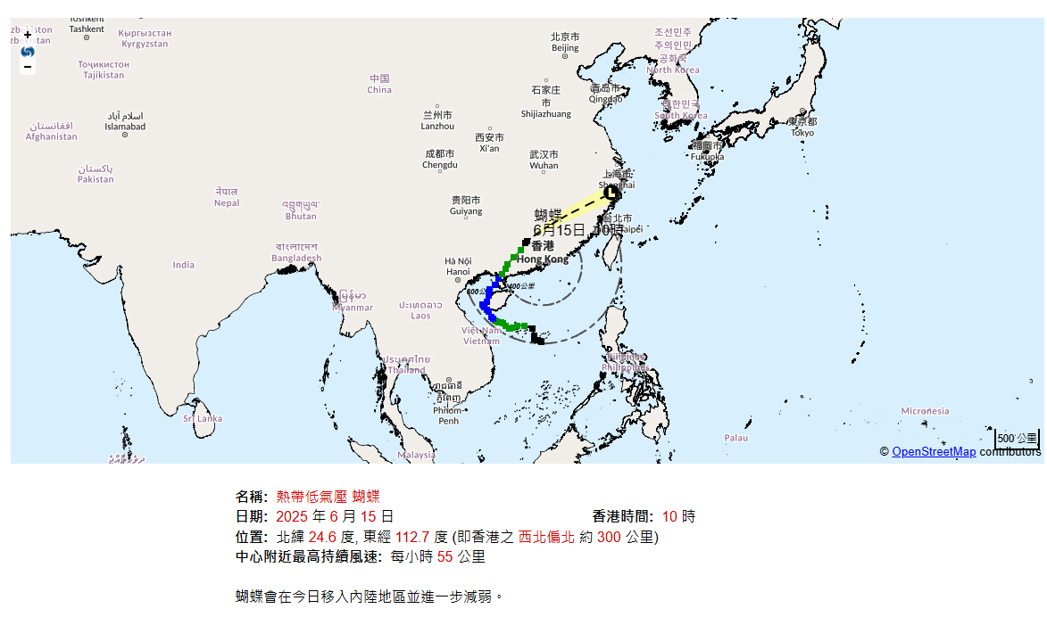 即時熱點 天文台:三號強風信號會在今日下午初時維持 今日料有狂風驟雨幾陣雷暴 (09:59) 發佈於 5 個月 前 2025 年 6 月 15 日 By 明報 三號強風信號會在今日(15日)下午初時維持。預料本港下午稍後風力逐步緩和,天文台會視乎本港風力變化及蝴蝶減弱程度,考慮改發一號戒備信號,或以強烈季候風信號取代熱帶氣旋警告信號。 本港地區今日天氣預測:吹清勁至強風程度南至西南風,初時高地間中達烈風程度,下午風勢逐步緩和。大致多雲,間中有狂風驟雨及幾陣雷暴,稍後驟雨逐漸減少。海有大浪及湧浪。展望周一及周二天氣仍然不穩定,雨勢有時頗大。本周中後期驟雨減少,天色好轉。(天文台) 相關文章:天文台天氣天氣速遞打風編輯推介蝴蝶 Up Next 尖東站利物浦官方期間限定店揭幕 展香港利物浦球迷會收藏 售香港限定商品|好去處 (12:26) 不要錯過 多啦A夢「隨意門」台北12地點亮相 遊客6月28日至9月14日完成任務可獲多啦A夢徽章 (14:30) 繼續閱讀 贊助商 猜你喜歡 天氣|天文台:日間最高28°C 吹和緩北至東北風 (09:31) 天氣|天文台:周日多雲日間乾燥 氣溫24至30°C (20:01) 短片:樺加沙一個月後 重災區將軍澳海濱未復常、富麗敦海洋公園酒店大門復修中 (08:59) 天文台:今日沿岸水位高0.5至1米 晚上漲潮部分沿岸低窪地區或輕微水浸 (08:35) 綠色力量首次在港發現「鹿灰蝶」 料有機會在港繁衍 (18:16) 天氣|天文台:本港今早普遍18°C 未來兩三日氣溫回升 (08:23)