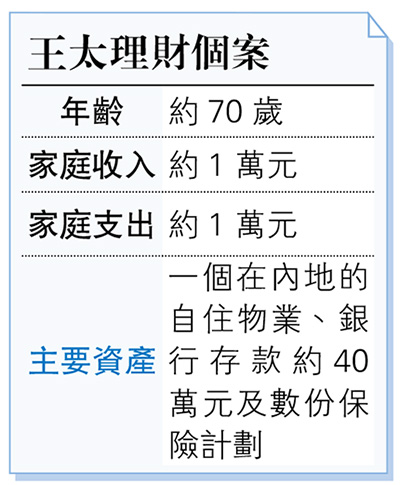 順便一提,不少退休人士檢視資產時,忘記了檢視手上的保險計劃,就王太的情况而言,除了醫療保險,似乎亦有其他的保險,應一併檢視。如果手上有人壽保險的話,可以留意是否符合申請保單逆按計劃,利用壽險保單作為抵押品,向貸款機構提取保單逆按貸款從而「自製長糧」,進一步將手上的資源活化,支持退休生活。