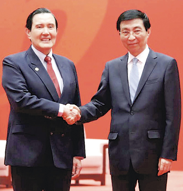 據「中時新聞網」報道,馬英九與王滬寧見面並共同出席海峽論壇,他會面時稱「也請王主席代我轉達對習(近平)總書記的問候」。馬表示,「當前兩岸情勢確實存在不確定性與挑戰,但愈是這樣的時刻,愈需要保持理性與冷靜的態度,愈需要以交流促進了解」。他稱未來兩岸發展關鍵在民心向背,「中國5000年歷史,合久必分,分久必合,台灣民眾渴望兩岸朝向『和』與『合』的方向」。