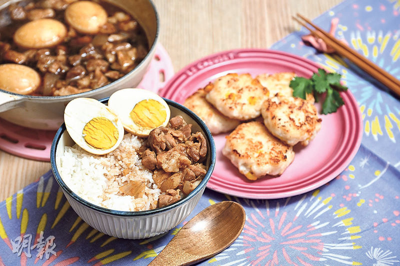 【明報專訊】今期為大家介紹的兩款食譜,既可做佐飯小菜,又可作為派對或餐前小食,最重要是做法簡單快捷,且香口美味。第一道粟米脆蝦餅,選用現成蝦滑,只需加入想要的材料配搭就可完成。今次我選用粟米,因為大部分小朋友也喜歡。遇上偏食的孩子,大家不妨趁機加入一些有營養但他們平日不太喜歡的食材,如紅蘿蔔、洋葱等,混入蝦膠中,讓他們不知不覺吃入肚。另一道台式滷肉則是我個人推介,當中有肉有蛋,拌飯極佳,小朋友尤其喜歡。做這道菜說易不易說難不難,一般人平時會選用豬腩肉,如果想「偷懶」,可以用絞肉碎,這樣會省卻一大半時間。另外一次可做一大鍋滷肉,吃不完的放入雪櫃,加熱便可再度享用。