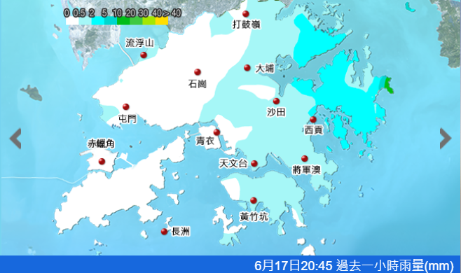 即時熱點 天氣|天文台:預料未來一兩小時本港部分地區雨勢較大 (21:12) 發佈於 4 個月 前 2025 年 6 月 17 日 By 明報 天文台今日(17日)晚上9時表示,與活躍西南氣流相關的驟雨正影響本港以南水域,並逐漸靠近本港,預料未來一兩小時本港部分地區雨勢較大。市民請留意天氣變化。 相關文章:天文台天氣速遞編輯推介 Up Next 康文署推介西貢行山路線 經深涌大草地 企嶺下賞山水美景 (12:11) 不要錯過 尖東站利物浦官方期間限定店揭幕 展香港利物浦球迷會收藏 售香港限定商品|好去處 (12:26) 繼續閱讀 贊助商 猜你喜歡 天文台上午8時40分錄18.4°C 今年入秋以來最低 (09:03) 天文台取消所有熱帶氣旋警告信號 (18:20) 天氣|天文台:周三有幾陣雨 市區最低19°C (20:57) 風神 | 緩慢趨向西南 海口3港停運 (00:34) 風神|教育局:幼稚園及部分特殊學校明日停課 (17:33) 天文台:下午5時20分直接發出三號強風信號 (12:06)
