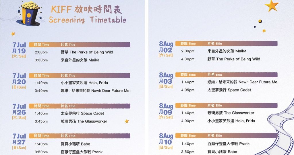 暑假將至,第九屆香港兒童國際電影節(KIFF)將於7月19日至8月10日逢周六周日舉行,並以「愛・勇氣・成長」為主題,放映8部來自世界各地的精選兒童電影與動畫。門票6月19日起公開發售,可在網上購票(hk.kiff.asia/PE),或在圓方PREMIERE ELEMENTS戲院票房購票。另外,小朋友可參加充當「小帶位員」的工作坊,以及了解電影如何在戲院播放,工作坊同樣於6月19日開始報名,報名按此。