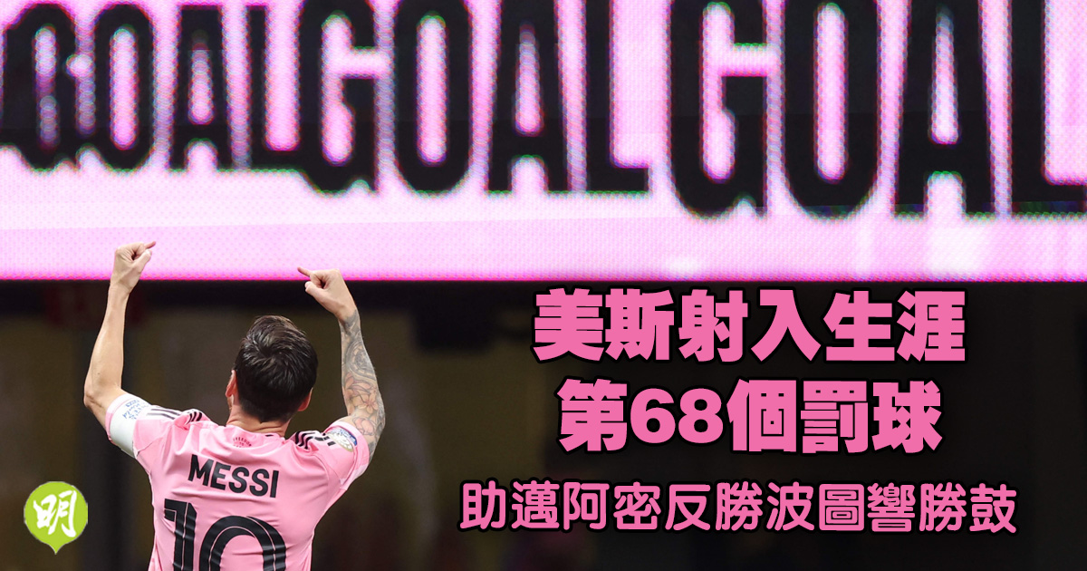 阿根廷隊球王美斯今晨(20日)射入職業生涯第68個罰球,帶領國際邁阿密在世界冠軍球會盃A組次輪,以2:1反勝波圖敲響勝鼓,賽後與以2:0輕取艾阿里的彭美拉斯同是兩戰得4分。下周二便38歲的美斯賽後獲主帥馬斯真蘭奴大讚即使末段筋疲力竭,仍戰意高昂地執着爭勝。