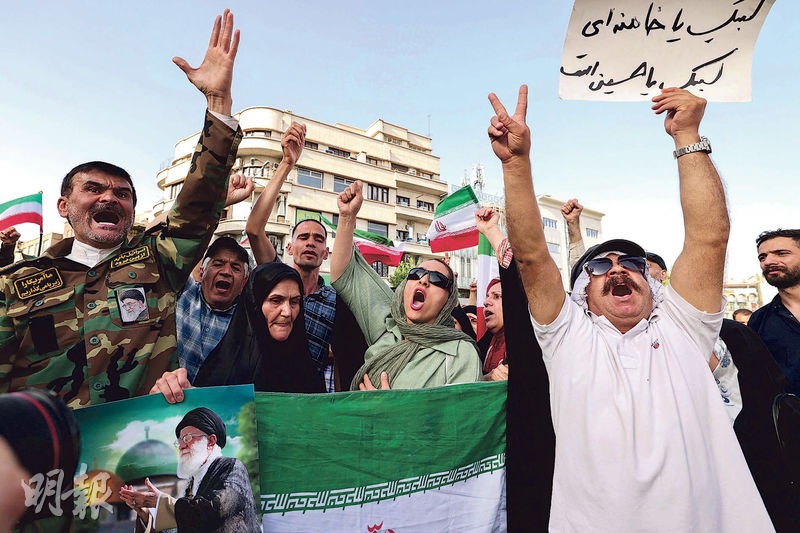伊朗國內近年積累不少民怨,但美軍空襲激起一些民眾愛國心。首都德黑蘭周日晚有大批民眾集會,國營傳媒片段顯示有人揮動國旗高舉拳頭,舉着「打倒美國,打倒以色列」的標語,有政客稱參加者包括批評政府的人。總統佩澤希齊揚周日晚亦出席市中心的示威並簡短發言,承諾稍後會有更全面回應。