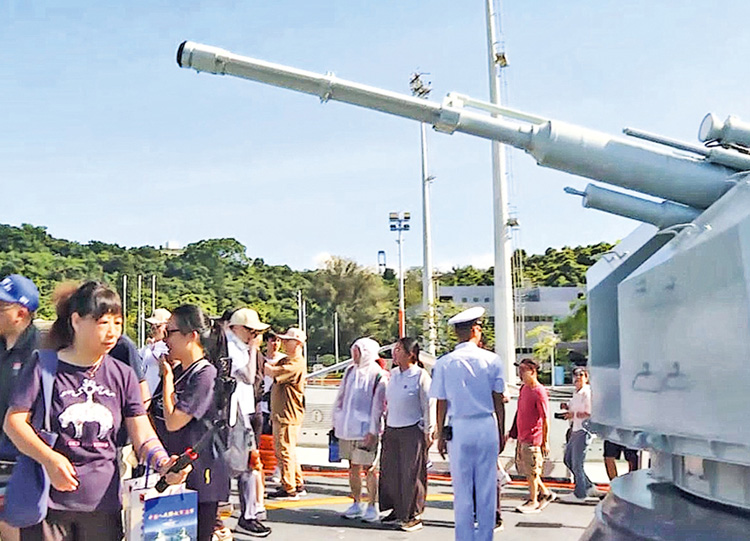 艦隊昨天最後一日開放予持票市民參觀,不少市民到昂船洲參觀屬艦。在「湛江艦」解說導彈系統、直升機等的少校查夏瑋形容市民熱情,主動與他「打卡」留念;在「運城艦」導賞的一級軍事長程書容則說有參觀的小朋友有意加入中國海軍。