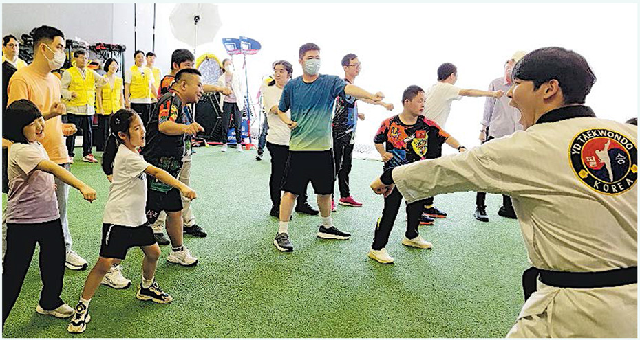 【明報專訊】韓國駐香港總領事館、香港韓人商工會日前合辦社區活動,安排韓國跆拳道大師及廚師,去到本地機構「LOVE 21」會址,跟本港唐氏綜合症及自閉症患者,同埋佢哋嘅家長一齊學習跆拳道基本動作,又一齊炮製韓式紫菜包飯同炒年糕。