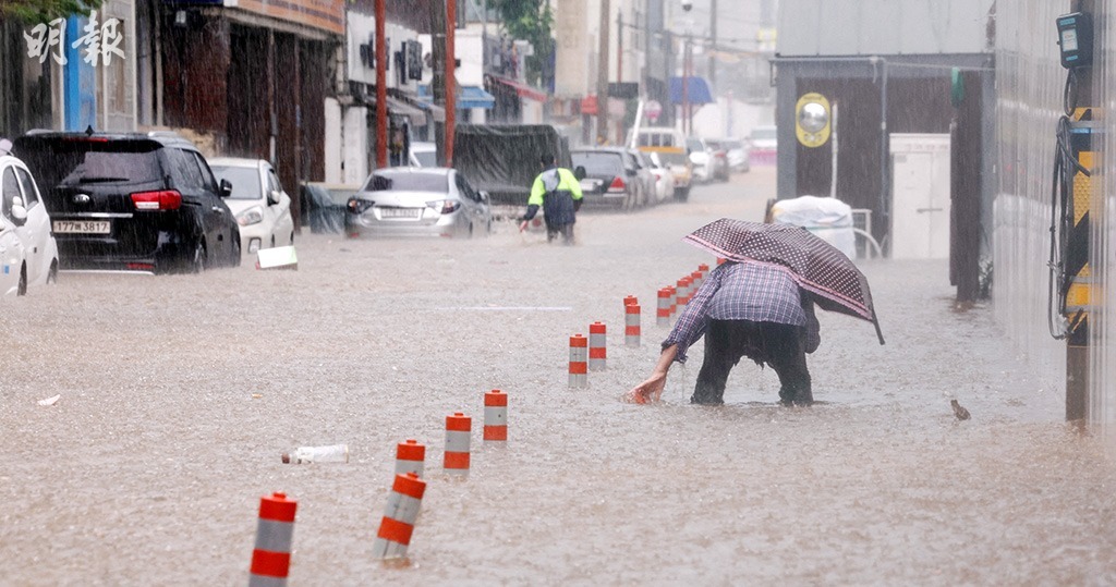 韓國每年7月都會有季風雨,但位於西部忠清南道3個地區周四(17日)錄得每小時降雨歷來最高紀錄,其中瑞山市最高一小時錄得114.9毫米降雨,屬百年一遇情況,亦是1904年有紀錄以來新高。行政安全部表示,暴雨造成最少2人死,逾千人疏散。