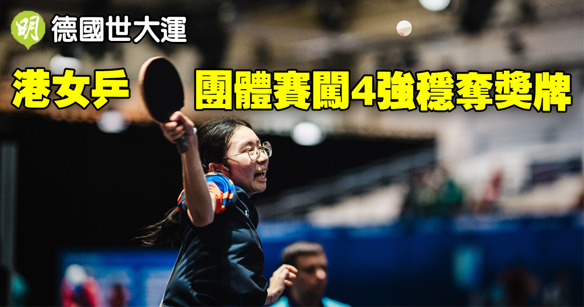 上屆在中國成都世大運女團摘銅而回的港隊女乒,今屆延續佳績,在小組以首名出線後,16強再以場數3:0輕取蒙古隊,今午8強面對德國隊,在黃凱彤先失一場下,其隊友江芷林、李凱敏及吳詠琳其後連下三城,終以場數3:1反勝晉級,明晨將與日本隊爭入決賽之餘,在不設季軍戰下已鎖定獎牌,至少看齊上屆成績。至於由陳顥樺、施穎亨、溫保庭及姚鈞濤助陣的港隊男乒,今在8強對德國隊雖一度由新星陳顥樺兩度取勝追平場數,惟「守尾門」的姚鈞濤在決勝一戰與德國的法迪夫打足5局,至最後決勝局僅輸「刁時」10:12而出局,與獎牌緣慳一面。