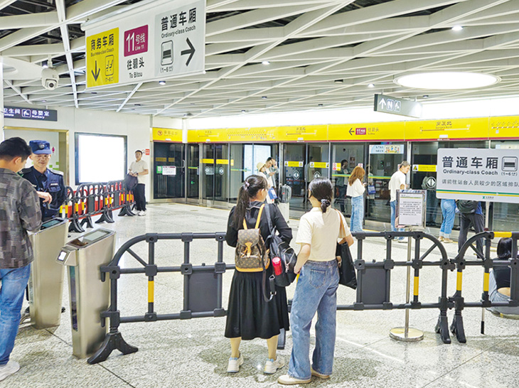 這方面,一河之隔的深圳地鐵提供了值得借鑑的範例。深圳地鐵11號線的商務車廂(類似東鐵頭等座)設於列車最前端,並在月台上以圍擋明確劃分專屬候車區(圖1)。乘客須在圍擋入口處另行拍卡或掃碼,並有工作人員協助。此外,商務車廂與普通車廂之間設有隔門,杜絕車內誤入的可能。儘管圍擋設計或影響美觀,但從根本上解決了資訊不對稱問題——透過空間區隔,直接告知乘客「此為付費車廂,須從專用入口進出」。