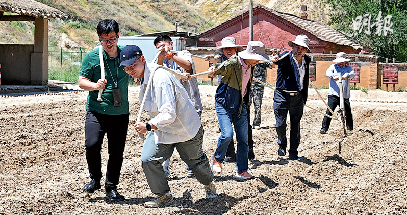 從石河子市中心往南15公里的「軍墾第一連」,是上世紀50年代第八師一五二團墾荒連隊的駐地,因保存尚完整,2022年被修繕為軍墾體驗和教育基地。這裏保存着當年墾荒時的地窩子、伙房、蓄水澇壩,還有木輪牛車、木犁、石磨等工具和生活用品。駐地有食堂大鍋飯、教室,還有犁地、打鐵、磨豆腐等「軍墾日常勞作」體驗。「兵三代」成了講解人,示範當年的燒炭打鐵技藝。