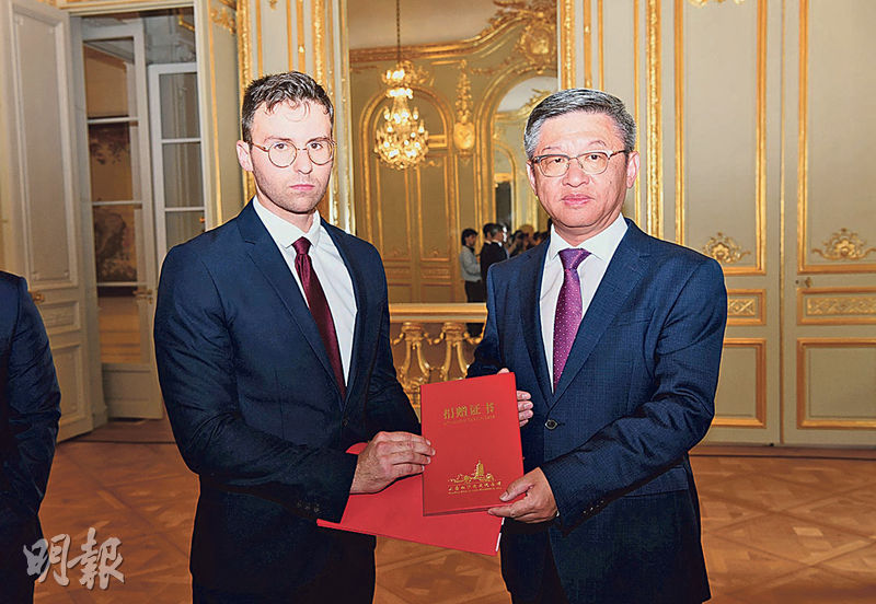 【明報專訊】中國駐法國大使館周一(4日)舉行抗戰歷史照片捐贈交接儀式,使館公使陳棟會見法國捐贈人馬庫斯‧德雷特斯等人,並向馬庫斯轉交上海淞滬抗戰紀念館的捐贈證書、感謝信等文件。