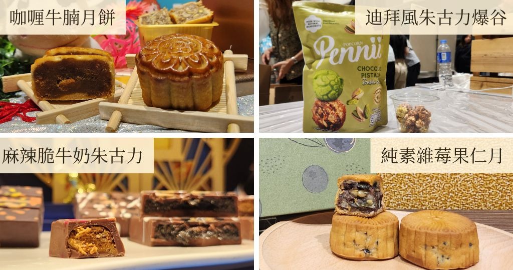 以港人咖喱牛腩為基礎,特製成獨特的咖喱月餅內餡,味道結合鹹與甜,新奇感十足。另有黑椒牛扒月餅、香辣蛋黃牛肉/豬肉月餅。