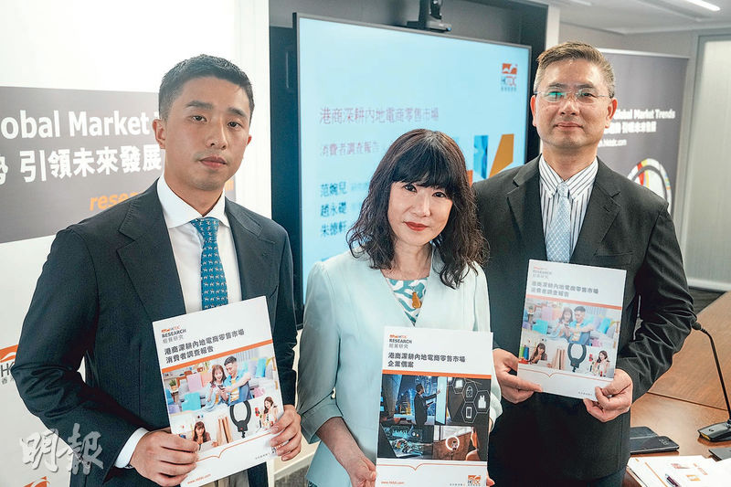【明報專訊】貿易發展局昨日公布有關港企進軍內地市場的調查報告,受訪2200名內地網購消費者對香港產品的評分達8.7(滿分為10),其中78%受訪者過去一年曾網購香港產品。貿發局研究總監范婉兒表示,去年底仍有部分港企打算進軍美國市場,惟受中美關稅戰影響,相信「未來兩年有興趣拓展美國市場的(港企)數字應會變低」,認為業界已將目光聚焦內地、東盟乃至歐洲等地「找新出路」。