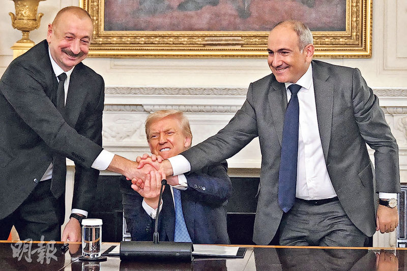 【明報專訊】南高加索地區宿敵亞美尼亞與阿塞拜疆領袖上周五(8日)在美國總統特朗普見證下,於白宮簽署和平協議,旨在結束兩國逾30年來的衝突。協議一大焦點是雙方同意建立一條以特朗普命名、連接阿塞拜疆本土與其外飛地納希切萬自治共和國、具有連接歐亞大陸戰略意義的運輸走廊,授予美企獨家開發權,特朗普視之為兼具商業利益及外交突破意義。俄羅斯稱歡迎協議,但伊朗表明封殺上述運輸走廊方案。