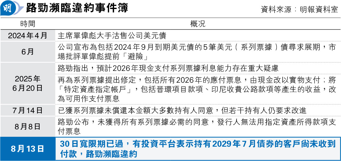 路勁據報寬限期前未付票息 瀕違約 本周二屆滿 報道指未付8814萬境外債息