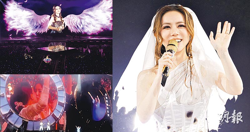 【明報專訊】鄧紫棋(G.E.M.)在啟德主場館舉行一連5場《I AM GLORIA世界巡迴演唱會2.0香港站》前晚圓滿結束,創下在該場館開最多場數紀錄。G.E.M.舉起水杯跟觀眾慶祝為20萬樂迷獻唱,寫下歷史新一頁。她表示以前追求做一個有卓越成績的女歌手,但走過34年的歲月,找到人生新意義,不是要做得幾勁、幾好,而是希望在亂世之中能跟歌迷互相鼓勵和影響。她自爆出場前感到氣喘,講第一句話痰上頸,但也可照唱。巡唱經歷1年9個月有不少辛酸,面對恐懼,在台上也要強顏歡笑,現在不會驚及逃避,會踢走恐懼選擇快樂。