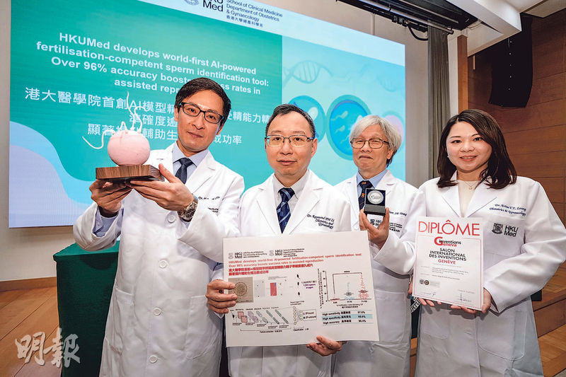港大醫學院團隊研發AI模型以卵子透明帶的選擇性結合機制為基礎,從卵子角度篩選優質精子,如具備透明帶結合能力精子比例低於4.9%,即男性有受精問題的風險增加。研究團隊在2022至2024年,對117名不孕或原因不明不孕的男性作臨牀驗證,分析逾4萬張影像,準確率逾96%,結果證實精子具備透明帶結合能力的比例,與人工受孕成功率密切相關。