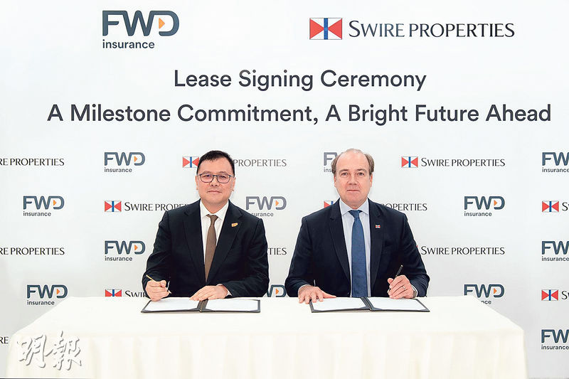 【明報專訊】雖然本港甲級商廈租金未見明顯回升,但再有大型企業大手租用甲廈。富衛(1828)旗下富衛香港,與太古地產(1972)昨日公布,簽訂10年租賃協議,承租鰂魚涌太古坊德宏大廈12層共33萬方呎樓面,該廈將於明年起易名為「富衛中心」,作為富衛香港總部。富衛租用的樓面較今年6月,美資投資管理公司Jane Street向恒地(0012)承租中環新海濱辦公大樓,首期6層涉22.34萬方呎樓面還要多10萬方呎,屬近年本港最大宗商廈租賃成交。