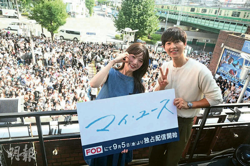 宋仲基與千玗嬉昨到東京新宿宣傳,吸引2000粉絲蜂擁而至。他們見大批粉絲聚集表現驚訝,但不忘大派飛吻及心心冧粉絲。宋仲基表示10多年前在日本宣傳《成均館緋聞》時,正是入住新宿附近的酒店,能在同一地方跟粉絲見面,讓他感慨萬千。