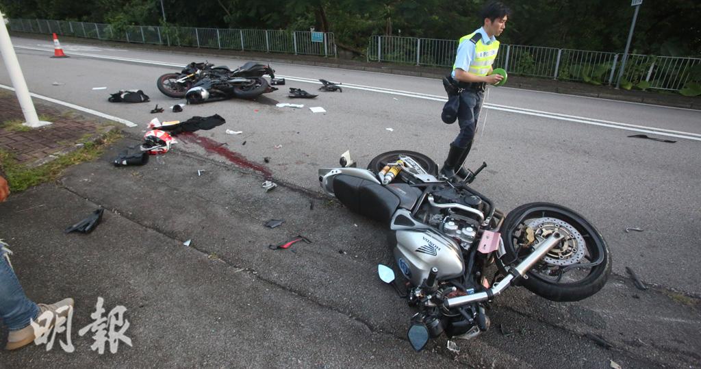 綜合網上流傳車Cam片與相片,鄧駕駛電單車尾隨一輛綿羊下斜,至軍營對開近快相機位置時,鄧收慢車速及亮起右轉指揮燈,一輛上斜私家車駛過後,鄧疑右轉準備駛至一處空地,轉彎期間與上斜的電單車相撞,人仰馬翻。廖昏迷倒臥近行人路,鄧則脫下頭盔倒卧在車旁,兩人均受傷流血,有人上前查看他們情况。