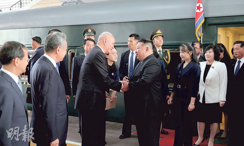 【明報專訊】朝鮮最高領導人金正恩乘坐火車專列於昨日下午抵達北京,中共中央政治局常委、中央書記處書記蔡奇及中國外長王毅到站迎接。畫面顯示,金正恩女兒金主愛隨行訪華。金正恩將在今天出席中國抗戰勝利80周年紀念活動,與國家主席習近平、俄羅斯總統普京等同登天安門城樓觀看閱兵。