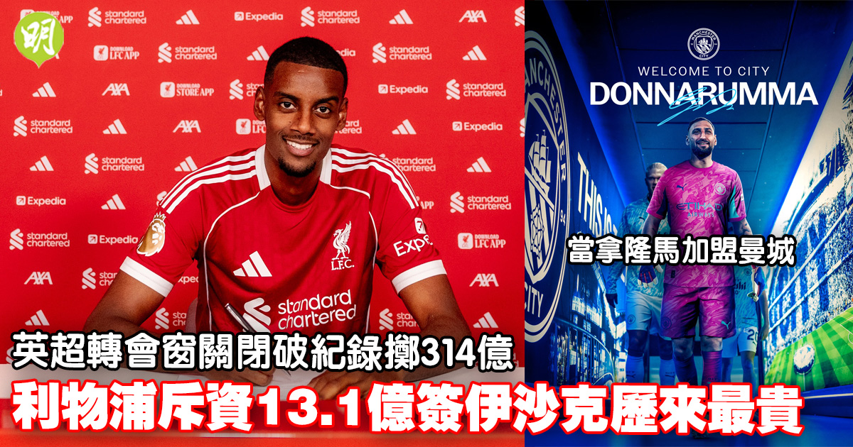 歐洲五大聯賽轉會窗今晨(2日)關閉,當中英超今夏增兵最瘋狂,據報轉會費總支出達破紀錄的逾30億鎊(約314億港元),其中上季冠軍利物浦據報以破國內紀錄的1.25億鎊(約13.1億港元),與來自紐卡素收購前鋒阿歷山大伊沙克簽約6年,曼城今午亦最後衝刺,簽入意大利隊門將基安盧基當拿隆馬;至於阿仙奴及曼聯則同時共放走8名冗員。