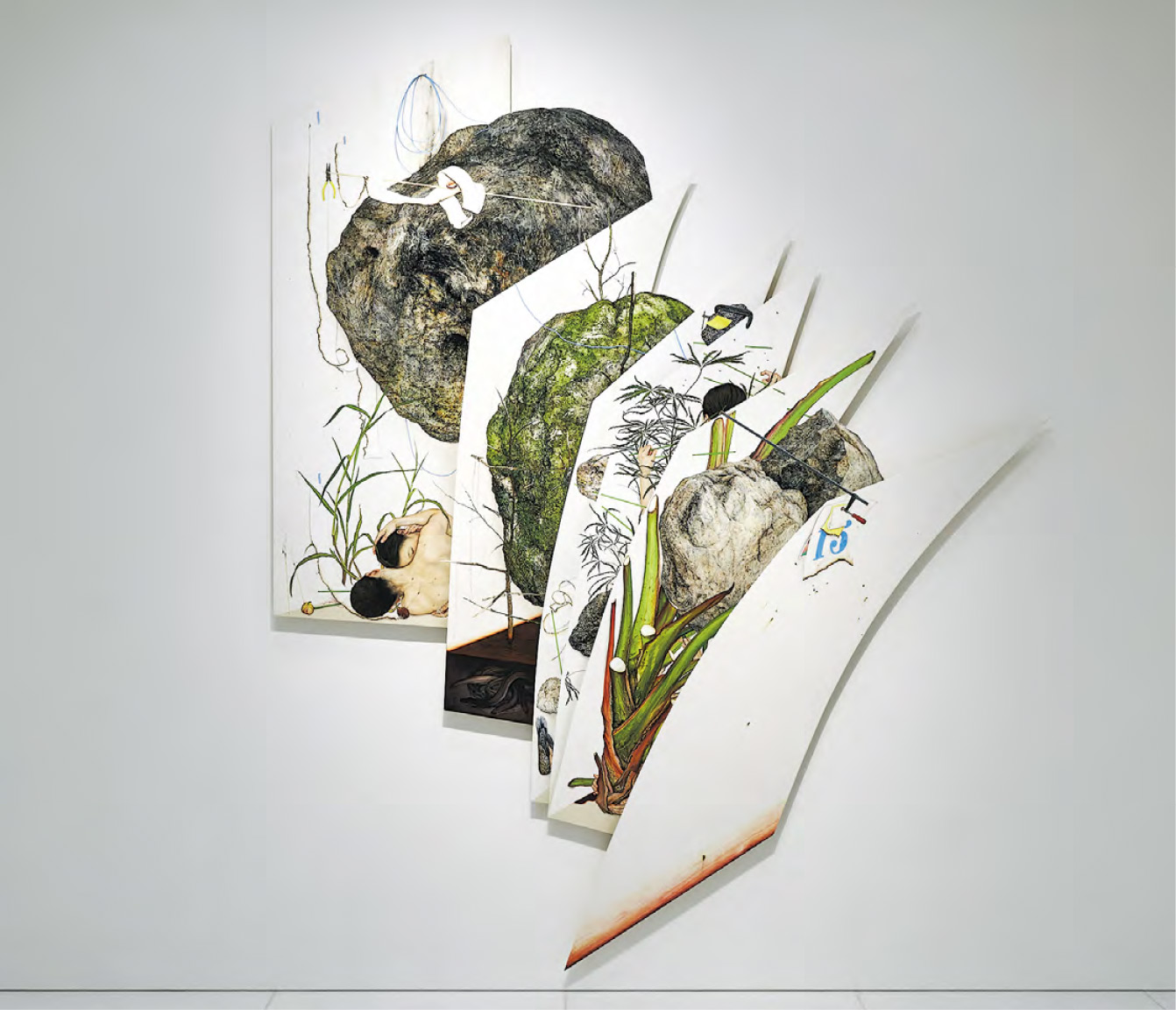 可見之物仍有實體可參照,不可見的抽象之物要如何表達?「在我們的生命裏,有許多事物無法用語言闡明,不屬於如文字般的意義系統,甚至無法被影像或感官呈現。」李珍珠指,她的創作核心並非清晰勾勒物件,相反,是把圖像成為超越自身意義的存在,一種從張力、碰撞與繁衍之中顯現的東西。因此在她的作品中,常見日常與記憶的物件交融為同一景觀,又會出現那些不易被「比喻化」卻又極為真實的主體,彼此之間的關係往往詭異陌生,「而我認為打開這些關係的『縫隙』足以承載萬物,我努力以自身的視覺語言,顯露那些不易命名、無法貼上標籤,但我們無疑能夠感受的事物」。