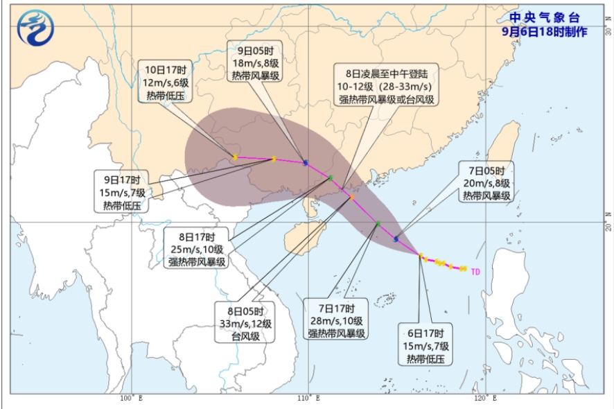 即時兩岸 熱帶低壓將逐步升級 8日登陸廣東帶來特大暴雨 (18:26) 發佈於 3 個月 前 2025 年 9 月 6 日 By 明報 中央氣象台發布,9月6日傍晚5時,南海熱帶低壓位於距離廣東省茂名市電白區東偏南方向約660公里海面,最大風力7級,最高風速約54公里時速。 熱帶低壓將以每小時15公里左右的速度向西北方向移動,強度逐漸增強,預計7日加強為今年第16號颱風(熱帶風暴級),趨向廣東中西部沿海,並將於8日在上述沿海登陸(強熱帶風暴級或颱風級)。 受其影響,預計7日至10日,華南、雲貴有暴雨,其中廣東西南部、廣西東南部局地有特大暴雨。(中央氣象台) 相關文章:天氣速遞熱帶低壓特大暴雨編輯推介颱風 Up Next 毛澤東孫一家四口看閱兵 短片曝光 (00:32) 不要錯過 葡萄牙總理下周訪華 中方願拓展 「一帶一路」合作 (17:27) 繼續閱讀 贊助商 猜你喜歡 天氣|天文台:非常乾燥最高23°C 明早市區降至約15°C (08:24) 天氣|天文台:周四天晴非常乾燥 市區最低17°C (21:11) 天氣|天文台:本港今早較昨日低兩至三度 日間非常乾燥 (08:23) 天氣|天文台:周三天晴非常乾燥 早上清涼市區最低17°C (20:58) 天氣|天文台:最高25°C 本周持續天晴乾燥 (08:20) 天氣|天文台:大致天晴 最高27°C (08:15)