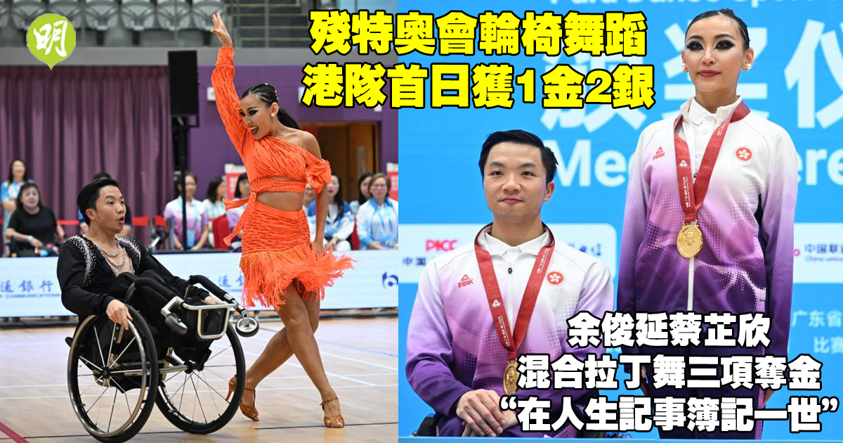 殘特奧會香港賽區的大眾項目輪椅舞蹈比賽,今早(6日)起一連兩日在馬鞍山體育館舉行。港隊首日即獲1金2銀,余俊延與蔡芷欣在混合拉丁舞三項勇奪金牌,蘇芷恩和李霈然則在混合標準舞三項及混合標準舞五項連奪兩面銀牌。余俊延賽後表示,非常振奮能夠為港隊取得金牌,拍檔蔡芷欣形容此事「會在人生記事簿裏記一世」。