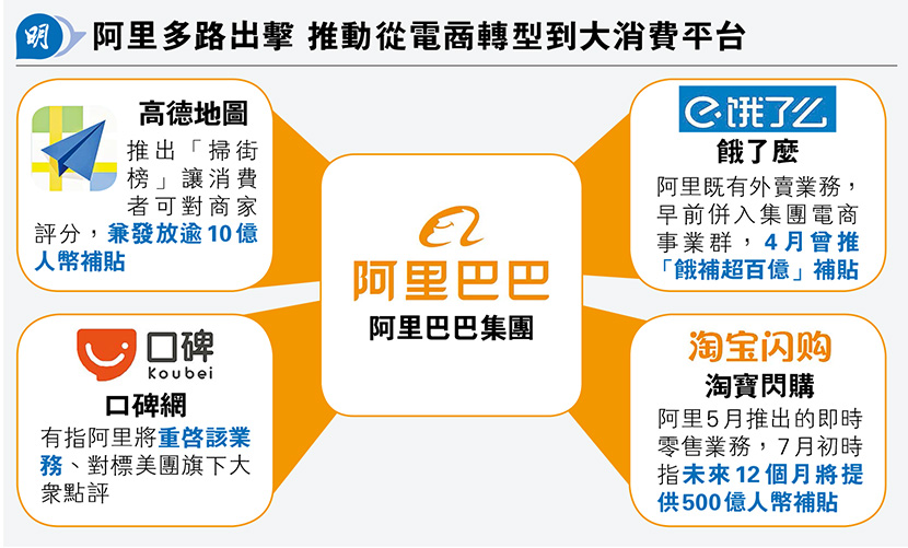 【明報專訊】內地電商龍頭阿里巴巴(9988)大舉投入外賣業務的同時,再開闢新戰場即到店團購業務,劍指美團(3690)高盈利率的同類分部。最新阿里旗下高德地圖宣布推出線下餐飲及生活服務榜單「高德掃街榜」,同時啟動「煙火好店支持計劃」,透過發放逾10億元人民幣出行及消費補貼,目標每天為線下餐飲等業界多帶出1000萬客流,有外資大行看好此舉的效益,並調高目標價。