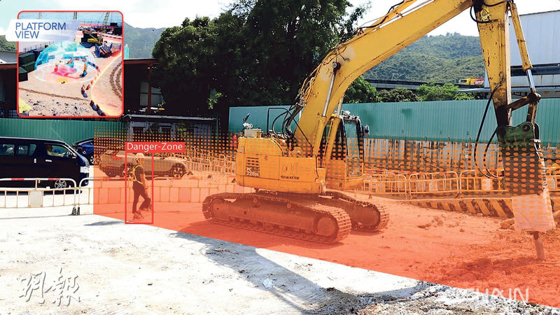 黃稱,系統分3層次,第一層由每月拍攝的航拍畫面及BIM設計模型建成,以顯示不同工程環節的進度是否如期,如有延誤會警示。第二層由不同物聯網(IoT)感測器提供實時數據,包括空氣、水質及噪音檢測器,以及工人和工程車的隨身記錄裝置,以空氣污染為例,一旦偵察到達某污染水平,實時數據可分級預警,讓負責人及早主動採取紓緩措施例如灑水,而非收投訴才處理。系統亦可將工地分不同區域,實時了解工人位置,如有人誤入危險區域會發警報,亦可記錄工人出勤時間。