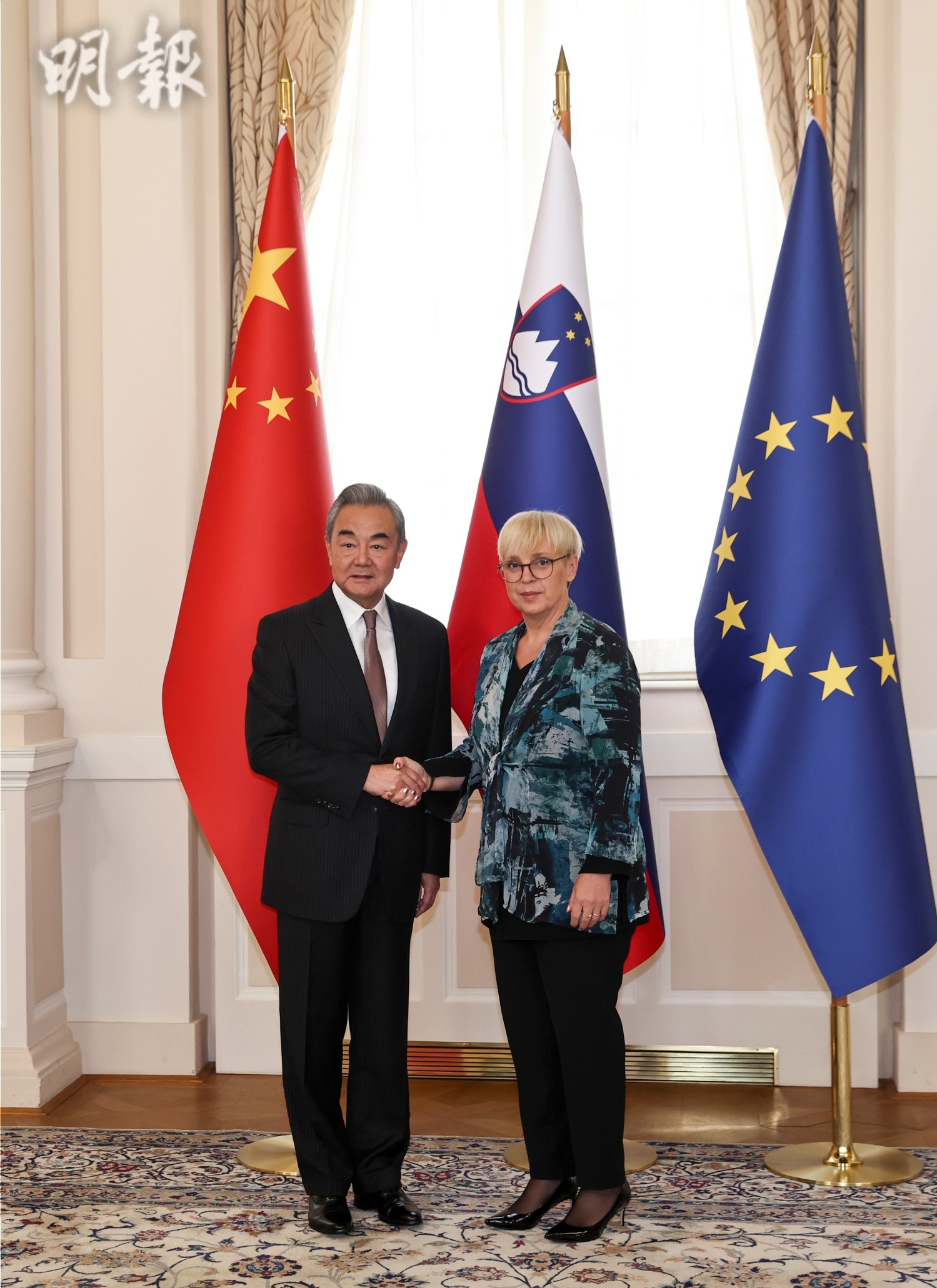 王毅稱,斯洛文尼亞踐行具有全球視野的「小國大外交」,客觀、友善看待中國的發展振興,視中國為伙伴而非對手,符合包括斯洛文尼亞在內各方的利益。中斯關係超越社會制度差異,是不同國情、大小國家相互尊重、合作共贏的典範。去年在盧布爾雅那落成的中斯友好紀念碑已成為兩國友誼的最新象徵。