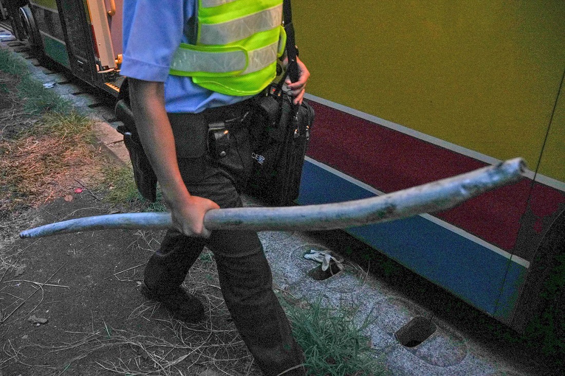 現場所見,巴士擋風玻璃裂開,有一個圓形洞,警員檢走一支鐵通調查,乘客紛紛落車等候轉車。案件暫列作交通意外。警方初步調查,相信涉案鐵通於事發前從一輛重型貨車跌落,並曾擊中尾隨一輛私家車。43歲姓曾男貨車司機涉嫌駕駛危險車輛被捕,今被扣查。