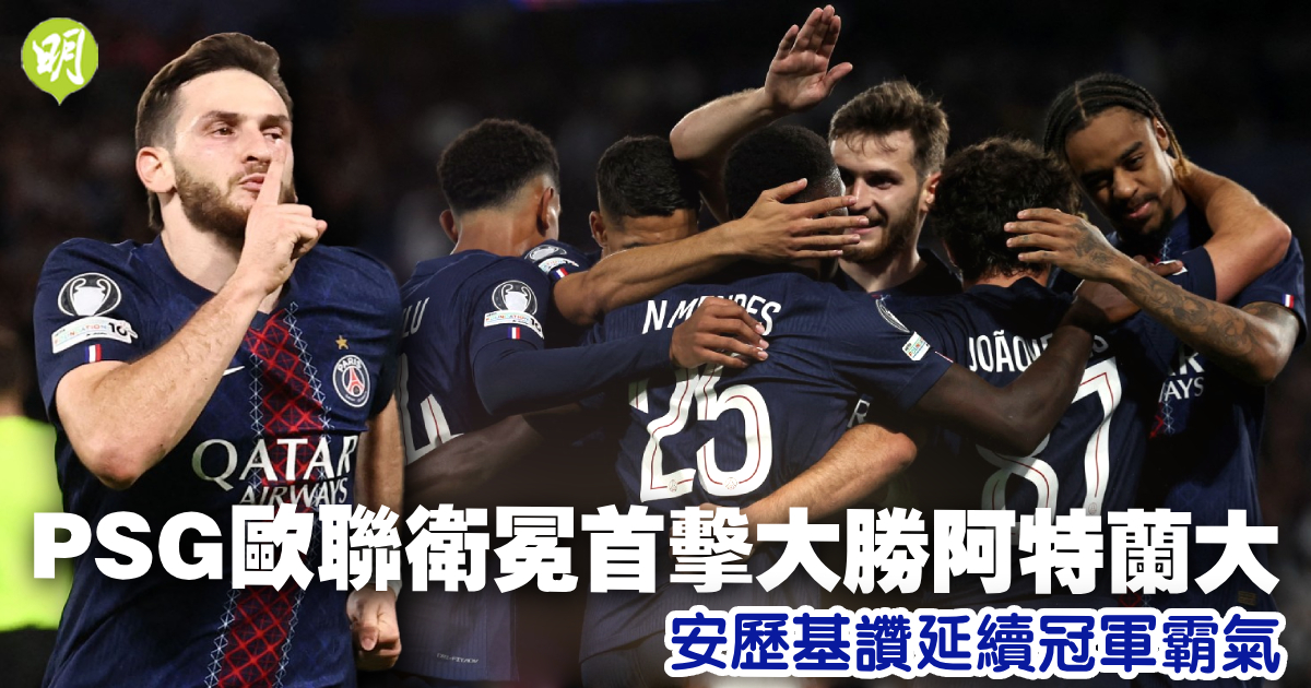 巴黎聖日耳門(PSG)今晨(18日)展開歐聯衛冕之旅,藉上、下半場各入兩球,主場4:0大勝阿特蘭大打響頭炮。
