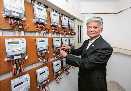 港燈董事總經理鄭祖瀛噚日朝早去到興東邨興康樓幫手安裝編號「582888」嘅新智能電表。佢話智能電表不但幫客戶有效管理用電,電表亦會將加密數據傳送返公司,幫助提升營運效率同電網管理。