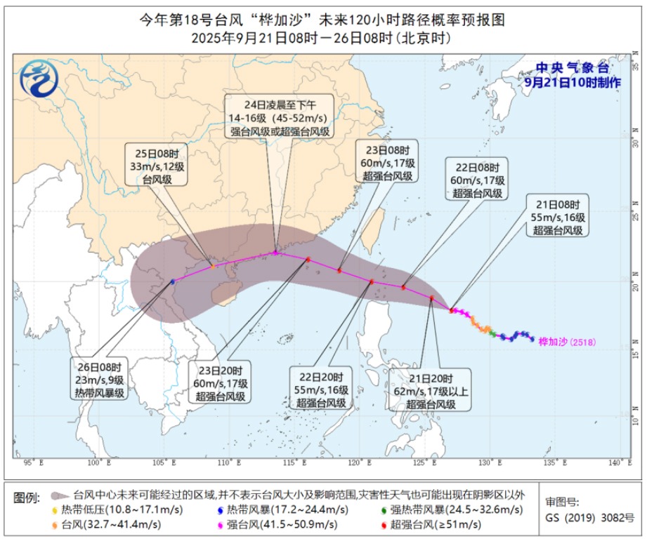 氣象部門提醒,樺加沙強度極強、風圈範圍大,具有極端性,將給南海中北部海面、廣東省海面及市縣帶來嚴重風雨浪潮影響,需提前做好巨災防御準備。特別是在南海中北部海域所有各類船和人員需盡快回港避風;已回港避風的船注意做好安全管理。(央視新聞)
