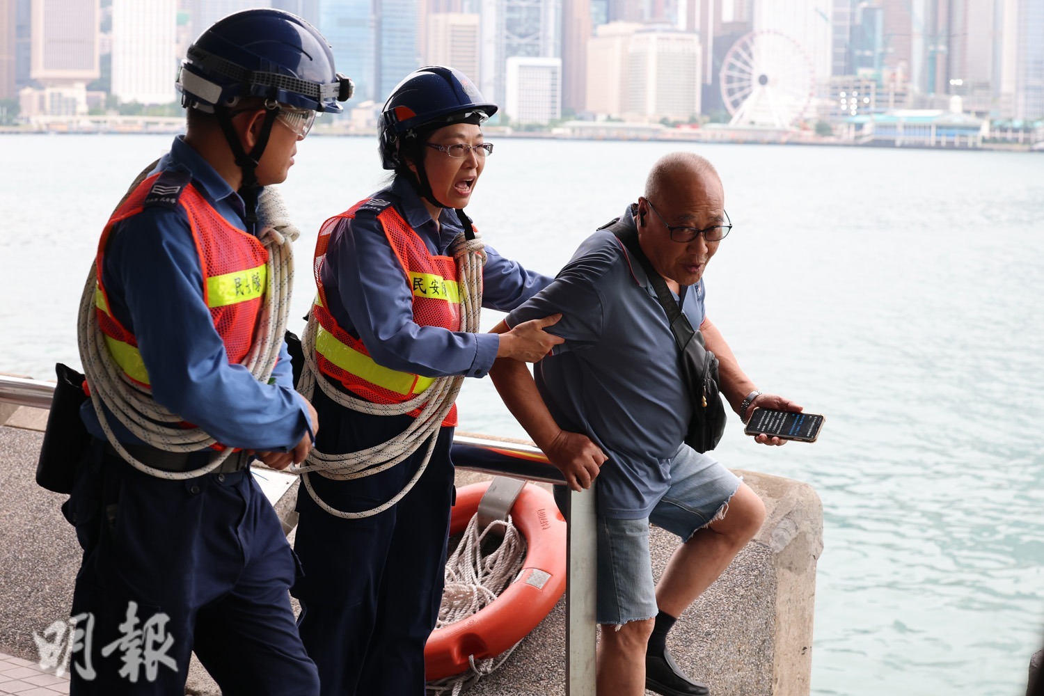 下午柴灣嘉業街疑有人觀浪墮海,附近的杏花邨隨即有警員在場驅趕觀浪者,並拉起橙帶。尖沙嘴海旁亦有民安隊成員勸喻市民遠離岸邊。