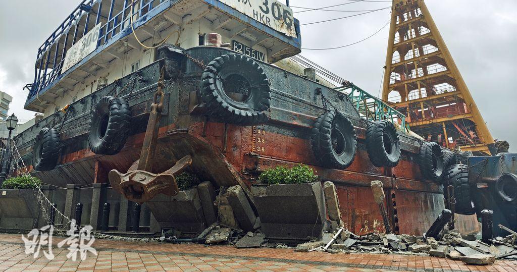 清晨5時許,警方接獲海逸豪園居民報案,指對開避風塘有多艘船隻受強風吹襲互相碰撞。現場所見,2艘躉船撞向岸邊,岸邊一列的欄杆撞毁,碎片散落一地。至近中午,政府新聞處指一艘海事處拖輪及兩艘由船東安排的拖輪將涉事躉船拖走。