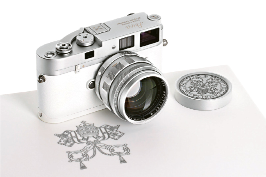 【明報專訊】徠茲相機拍賣會(Leitz Photographica Auction)將帶來珍稀慈善拍品:一部配備Leica Noctilux-M 50 mm f/1.2 ASPH.鏡頭的獨特Leica M-A菲林相機。此套裝曾於2024年由Leica Camera親自贈送給當時的羅馬天主教教宗方濟各,相機與鏡頭序號均為5,000,000。這部獨一無二的銀色鍍鉻版相機搭配特別設計的白色覆皮,底板、背蓋和部分操控零件也用上白色塗裝。相機熱靴蓋刻有聖彼得的鑰匙圖樣,頂蓋背鐫刻已故教宗方濟各的格言:Miserando atque eligendo,意指「因仁愛而被選中」。鐫刻以白、金、黑三色填充,鍍鉻Noctilux鏡頭上的鐫刻則為金色和白色。慈善拍賣品還包括一張他獲贈相機時的照片。此套裝起標價為3萬歐元(約27.3萬港元),預估落槌價為6萬至7萬歐元(約54.7萬至63.8萬港元)。拍賣會在11月22日於維也納帝國酒店舉行,拍賣所得款項將全數捐贈給已故教宗方濟各的個人慈善基金。