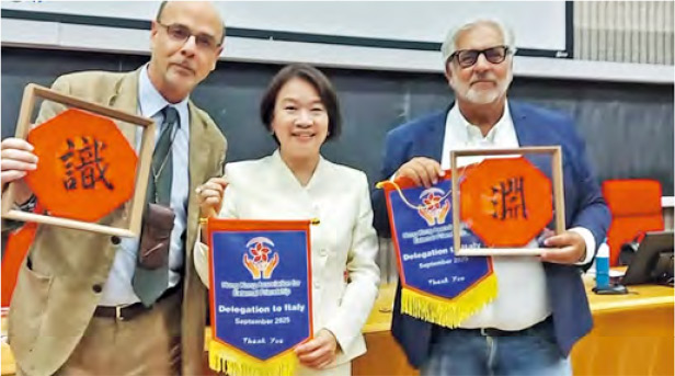 【明報專訊】唔少議員透過外訪「說好香港故事」。立法會選委界別議員梁美芬最近訪問意大利羅馬,並喺當地大學演講,建議國際參考「一國兩制」應對主權爭議;又憶述自己當年唔去外國讀書,而係赴北京進修《基本法》,以協助香港回歸。佢話演講贏得滿堂掌聲,令佢「深為感動」。
