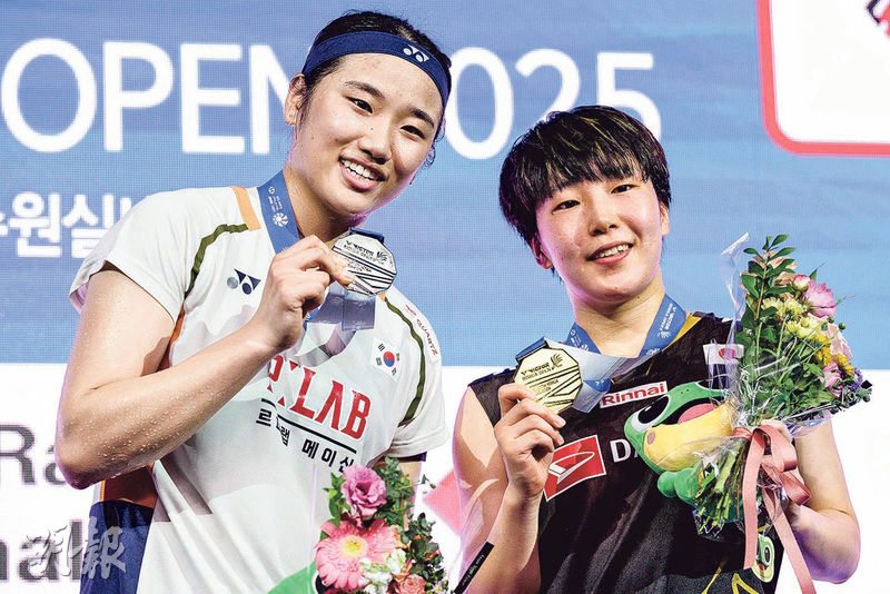 【明報專訊】屬世界羽聯超級500系列的韓國羽毛球公開賽昨在水原市煞科,韓國隊女單「世一」安洗瑩在決賽以直落兩局不敵世界排名第4的日本隊好手山口茜,無緣主場封后。男單方面,印尼隊名將祖拿坦基士堤在決賽以局數2:1擊敗丹麥隊好手安杜臣,奪得今年首個超級賽冠軍。