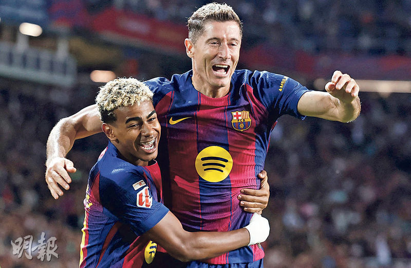 開季未嘗一敗的巴塞隆拿昨延續勇態,雖在主場面對皇家蘇斯達一度於31分鐘被敵衛奧迪奧蘇拿後上殺入禁區接應翼鋒巴倫尼特斯亞的左路傳中射入先落後,但全場控制戰局且攻門多達22次的「地上最強」,先在43分鐘由後衛祖利斯古迪接應鋒將拉舒福特的角球傳中頂入扳平,再於換邊後59分鐘,由傷癒復備上陣的超新星拉明耶馬右路傳中予射手羅拔利雲度夫斯基近門頭槌再下一城,終在主場以2:1反勝皇蘇,賽後在西甲7戰6勝1和得19分,以1分壓過日前在馬德里打吡作客不敵馬德里體育會的皇馬,登上榜首。